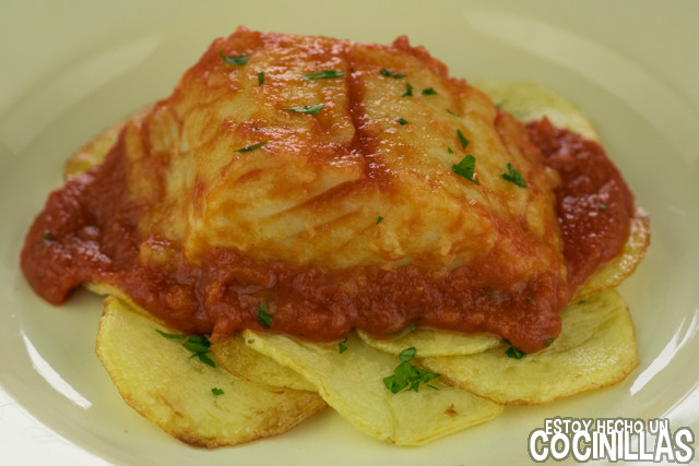 - Cubrirlos con la salsa de tomate, tapar y dejar cocer unos 5 minutos o 10 si el bacalao no está frito.