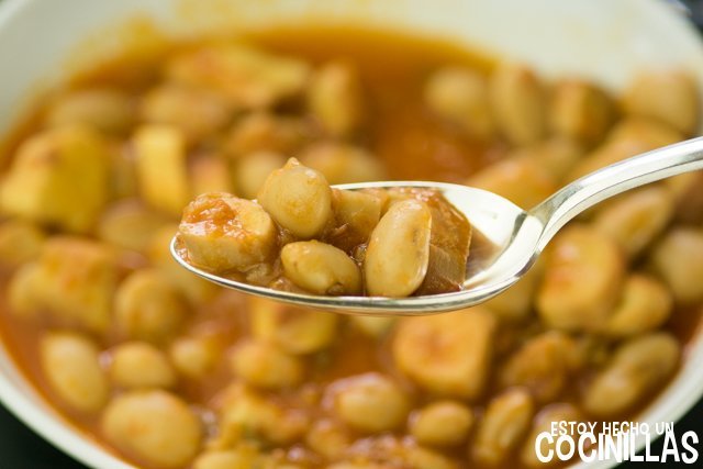 - Para que no se rompan demasiado las alubias, remover con cuidado con una cuchara de madera o simplemente meneando la olla.