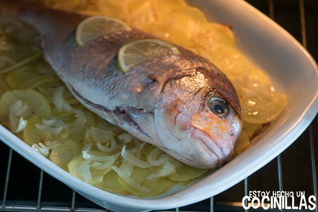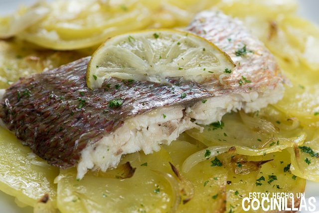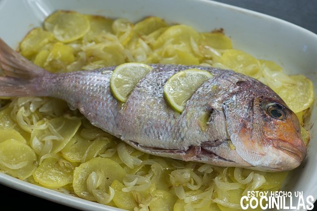 Receta de besugo al horno sencillo (sobre una cama de patatas)