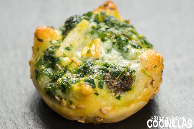 MINI TARTALETAS DE ESPINACAS, PASAS Y QUESO DE CABRA