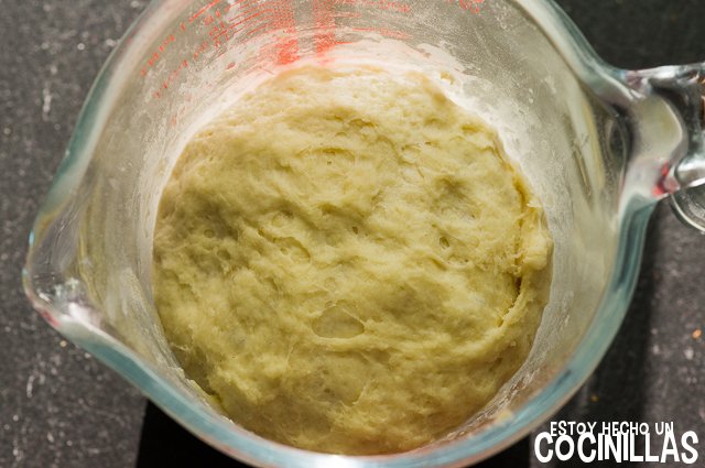 - Meter la masa en un bol y dejar reposar de 3 a 4 horas en una zona de la casa caliente.
